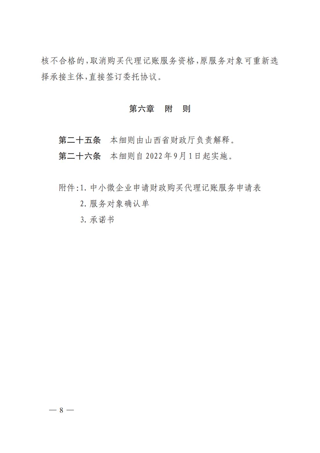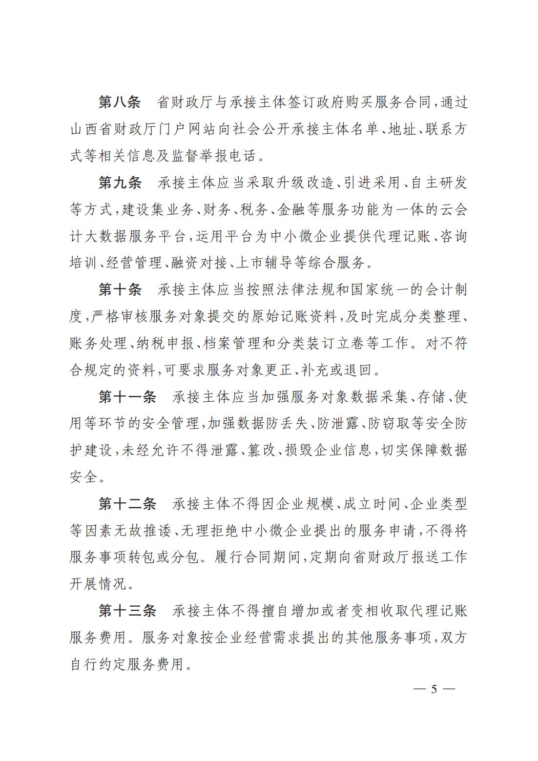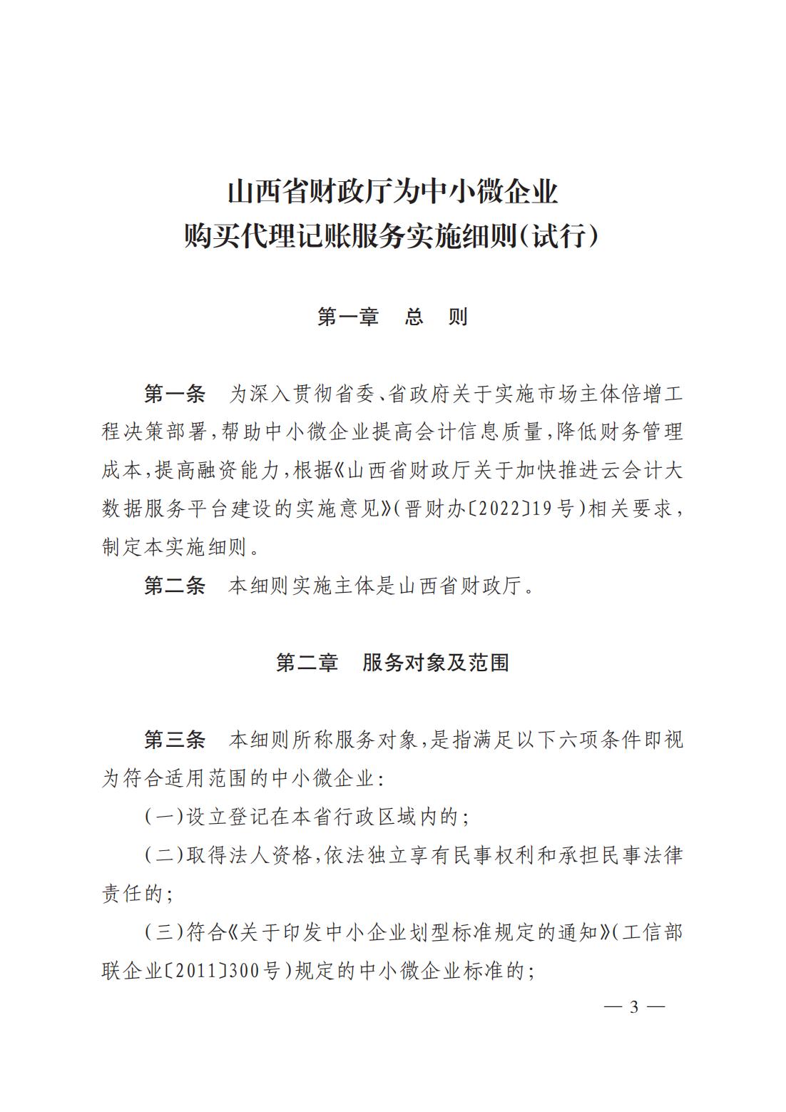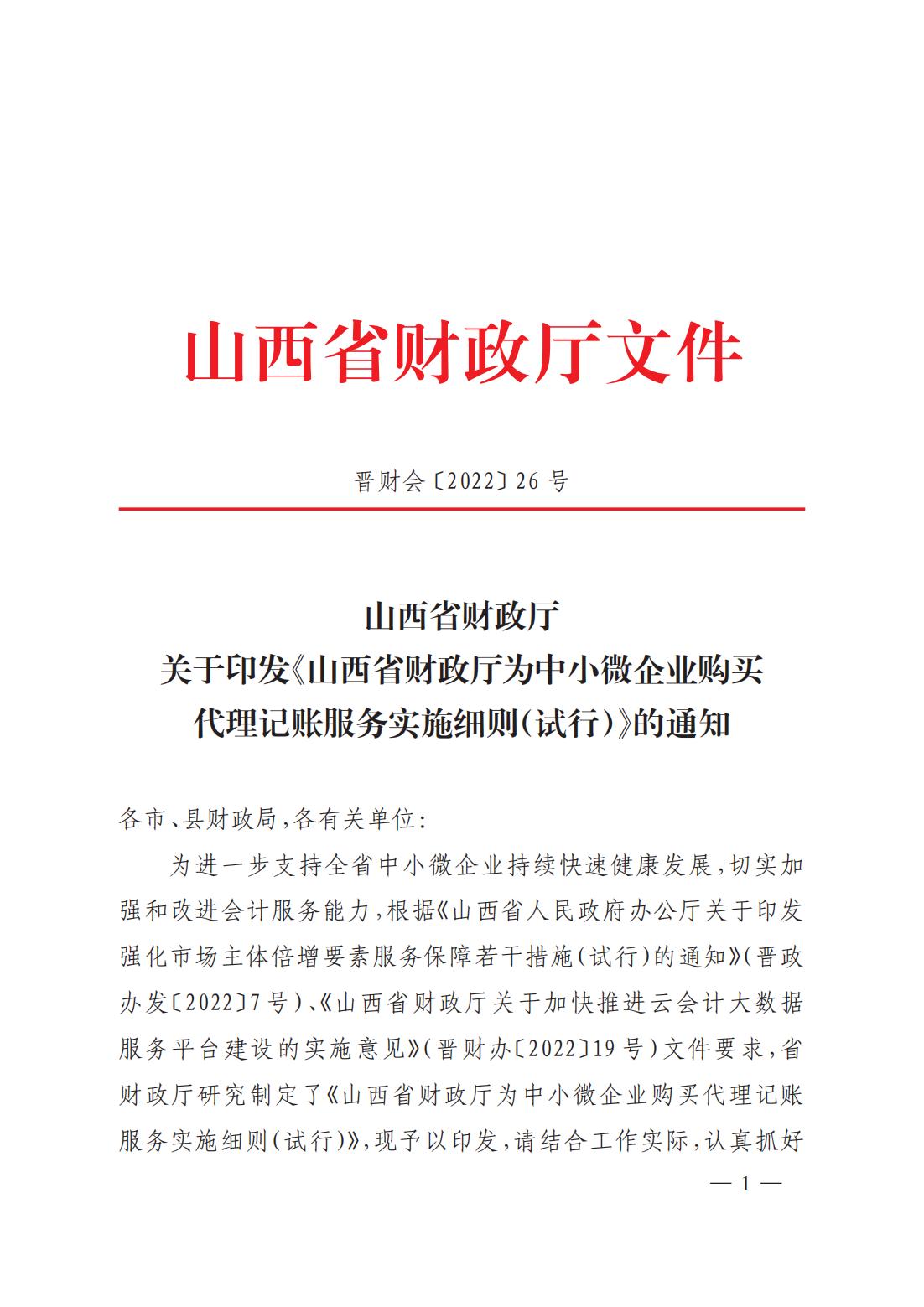 關(guān)于印發(fā)《山西省財(cái)政廳為中小微企業(yè)購(gòu)買(mǎi)代理記賬服務(wù)實(shí)施細(xì)則(試行)》的通知
